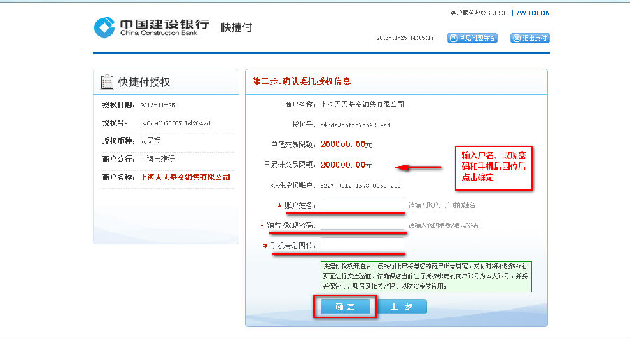 7、输入户名、取现密码和手机号后四位,然后点击确定;